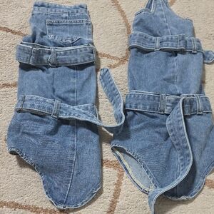 Chic denim leg warmers with adjustable straps. Perfect for a stylish look. worn one time.