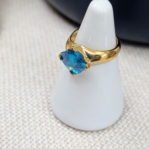 Vintage 925 Sterling Silver Ring with Blue Crystal | Rich Gold Finish | Size ~6