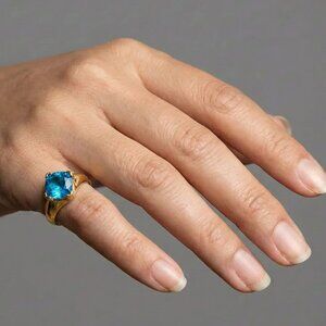 The stone is bright and eye-catching, and the smooth, high-polish setting has a substantial, well-made feel. A timeless statement piece with classic vintage character that wears beautifully on the hand.