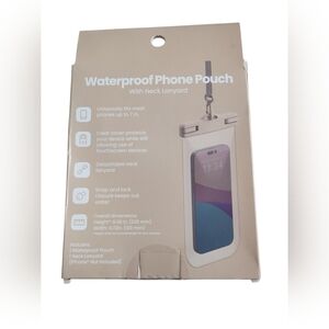 Keep your phone safe and dry with this waterproof phone pouch. Featuring a convenient neck lanyard, it's perfect for outdoor adventures. The cream color adds a stylish touch.