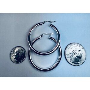 Vintage 925 Sterling Silver Hoop Earrings 31mm Thailand Estate Jewelry Classic