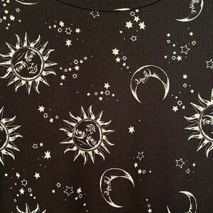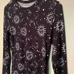 NOBO long sleeve black and white sun and moon shirt, stretchy, great quality
