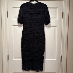 This stunning Shoshanna dress has intricate lace detailing with three quarter length gathered sleeves.