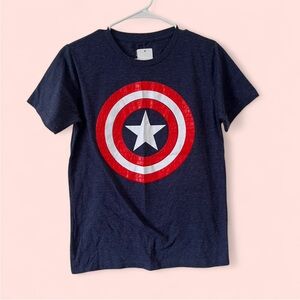 Boys XL Marvel navy blue Captain America short sleeve t-shirt. Round neck, crewneck collar. Comfy relaxed fit.