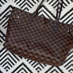 ❤️Elegant Brown Checkered Tote Bag & Dust Bag