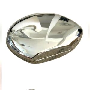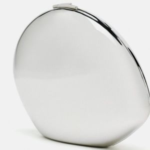 Silver Designer Style Metallic Oval Shaped Clutch Bag