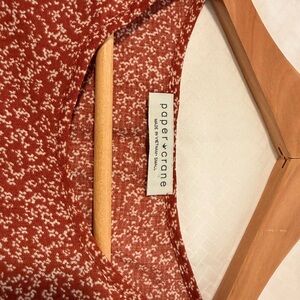 Effortless boho vibes! This Paper Crane babydoll-style blouse features a flattering tiered silhouette with mixed rust and neutral floral prints. Lightweight and flowy — perfect for casual days, work, or weekend wear.