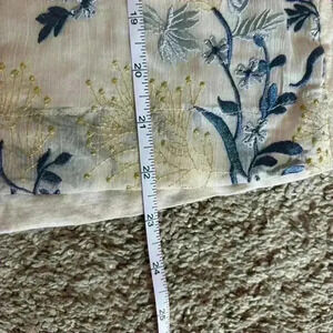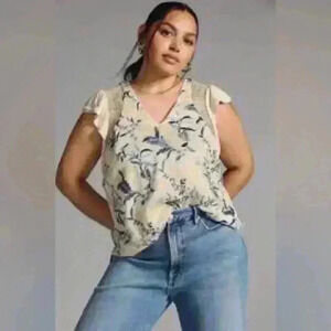 Anthropologie Tiny Flutter-Sleeve Embroidered Top Blue Floral Cream V Neck XS