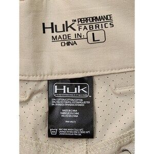 Huk Performance Fishing Shorts Men's Size L Beige Cargo Vented Stretch Quick Dry