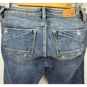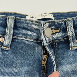 BKE Stella Womens Jeans Slim Fit Low Rise Flare Blue Denim Distressed Size 29