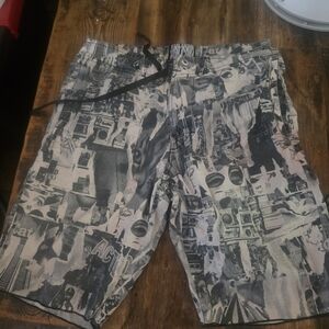 Bold Volcom shorts with striking black and white graphics. Perfect for casual wear.