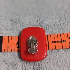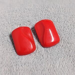 Vintage 80s Red Acrylic Rectangle Shaped Clip Earrings