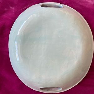 Handmade Ceramic Pink Flowers Design Tray w/ Handles 11”x9.5” Original