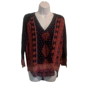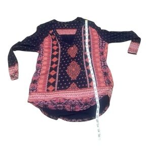 Lucky Brand Women M/M V Neck Long Sleeve Print Tunic Top