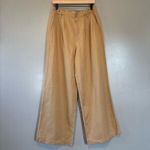 NWT Madewell sz 8 The Harlow Wide Leg Pleated Pant Linen Blend Trouser Khaki Tan