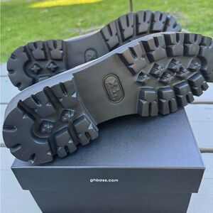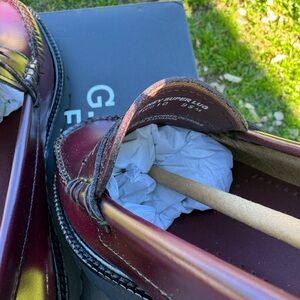 Gorgeous G. H. Bass Whitney Weejuns Super Lug Sole Loafers. New with tags in box. Retail for 185. Beautiful wine color. 1 1/4 inch heel. Cushioned insole. 100 percent Italian full grain leather upper. 100 percent calf leather lining. Rubber sole. Imported. Runs large.