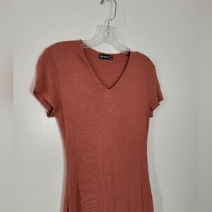 Popular21 T-Shirt Bodycon Dress Orange Copper Soft Stretchy Jersey Knit Medium