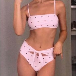 Florakini Pink Embellished Heart Tie Front Bikini Bottom Sz S NWOT