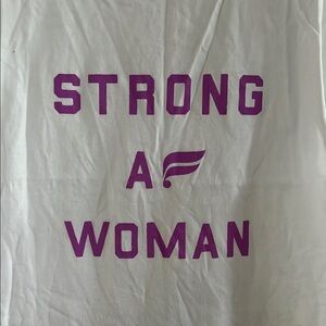 Fabletics “Strong AF Woman” Embrace empowerment with this stylish white sleeveless top featuring a bold pink print. Perfect for casual outings or workouts.