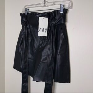 Zara Black Faux Leather Paperbag Shorts