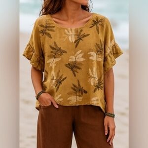 Elena Baldi Short Sleeve Printed Linen Top