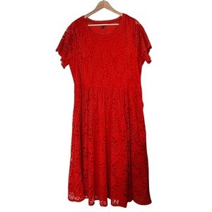 Torrid Lace Fit And Flare Red Midi Dress Plus Size 2X Party Romantic Whimsigoth