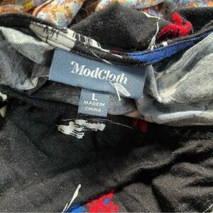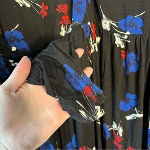 Modcloth Floral Fit And Flare Dress Womens Large Black Jersey Vneck