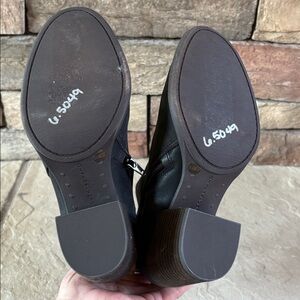 Lucky Brand size 6.5 black leather chunky heeled boots. Inside zipper closure. 2.5 chunky heel. I believe these are NWOT and were only tried on in store. Elastic on sides for easy on and off. Leather is super soft.