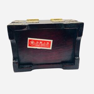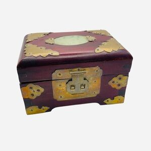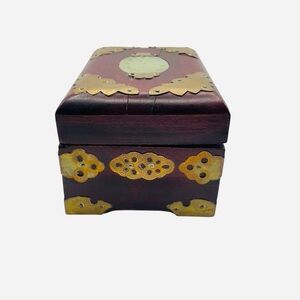 Vintage Wood & Brass Shanghai Chinese Jade Inlay Jewelry Box 5.25" x 4"