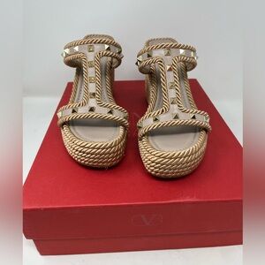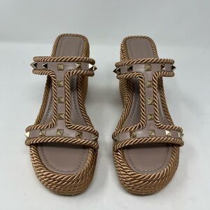 Valentino Garavani Rockstud Torchon T-Strap Rope Espadrille Wedge Sandal Platform size 39