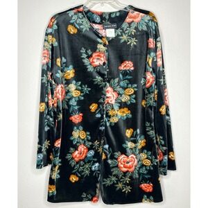 California Krush VTG Floral Velvet Duster Cardigan Long Sleeve XL Boho Cottage