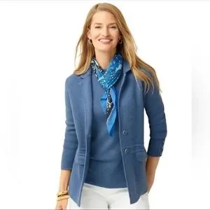 Talbots Merino Sweater Jacket Blazer in Heathered Denim Blue