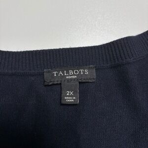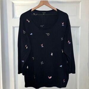 Talbots Sweater Nautical Embroidered Woman's XXL Three-Quarter-Sleeve Dark Navy