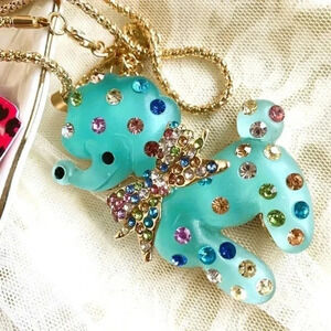 Blue Poodle Puppy Dog Crystal Goldtoned Fashion Necklace 27.5"