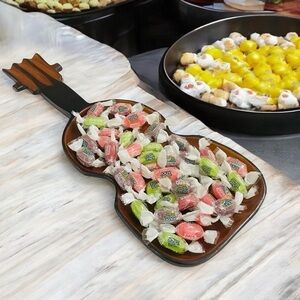 Good preowned vintage condition. This adorable violin shaped hand carved wooden tray does have a few markings as shown in the last photo. Made in Haiti of probably Maple or another hardwood. The tree measures 15 inches in length and 6 inches at the widest. The neck of the violin shape measures from between one and 4 inches to 2 1/4 inches. The tray is about 3/4 of an inch high and about a half inch deep. this is a cute and unique piece for a music oriented, decor or for Boho or even country.