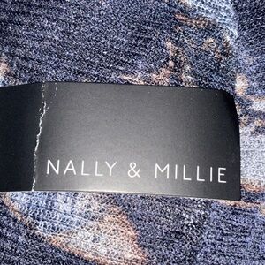 Nilly & Millie Graphic Marble Print Dress Blue Brown 3/4 Sleeve L Soft Flowy NEW