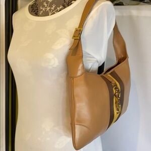This is a beautiful Gucci Vintage Jackie Camel Light Brown w/Mustard Yellow Brown Webbing Leather Bag