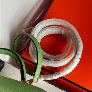 Elegant green leather handbag with gold-tone hardware. Perfect for adding a pop of color to any outfit. Real lather hand made all stamps are correct with strap and dust bag. Brand new. I did remove some stickers. Final sale