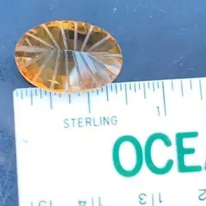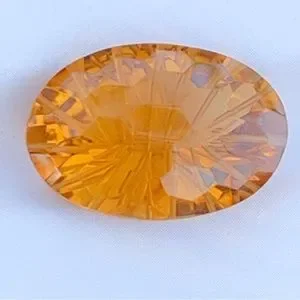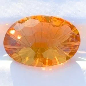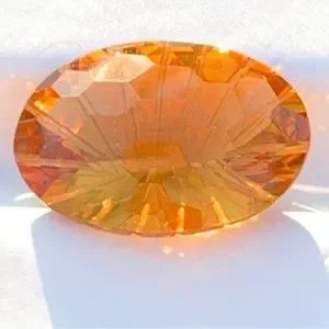 This is a natural concave cut football faceted deep orange citrine gemstone ideal for jewelry making. These lovely listing photos capture this citrine in natural outdoor light—this orange citrine reminds of citrus fruit or tangerine slice.