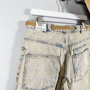 **Features: Distressed detailing throughout, paint splatter features, oversized patch pockets, contrast drawstring waist, pull-on style