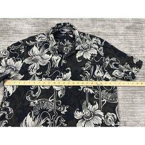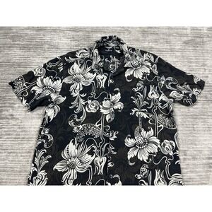Fusione Shirt Mens Large Black Floral Tropical Silk Button Up Short Sleeve