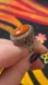 Gorgeous sterling silver ring with large sponge coral cabochon setting and Marcasite accents. Marked “925 NK Thailand.” Size 9 3/4. Very good vintage condition.