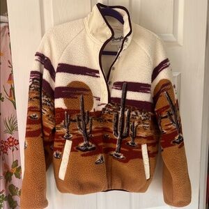 Wrangler retro half snap pullover Sherpa fleece desert western scene