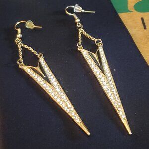 Elegant yet bold earing. No stamp or brand logo. Great earing to add sparkle and glam to that little black dress, gown or pantsuit. Dress these earings up or down with a sweater. Endless style options. Light weight.