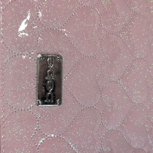 Bebe Pink Heart Quilted Shimmer Travel Cosmetic Bag 2 Travel Bottles NWT