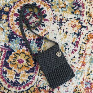 The Sak Crochet Crossbody Bag Boho Beach Vacation Travel Zip Top Flap Cover Gray