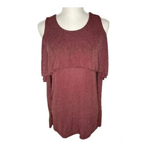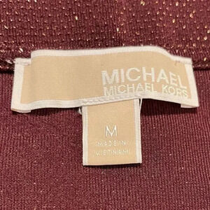 Michael Kors Women’s Medium Cold Shoulder Ruffle Gold Burgundy Top