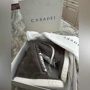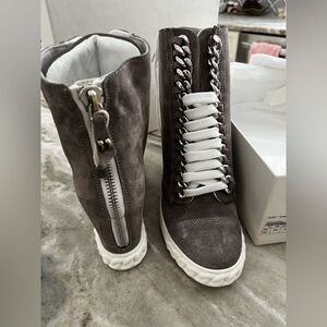 CASADEI Lace Up Wedge Boots In dark gray size 37 / 7 new in box