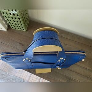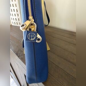 Henri Bendel West 57th Blue Leather Laptop Bag With Crossbody Strap & Lock