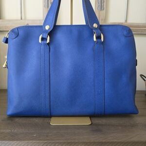 Henri Bendel West 57th Cobalt Blue Saffiano Leather Laptop Bag with Crossbody Strap & Lock